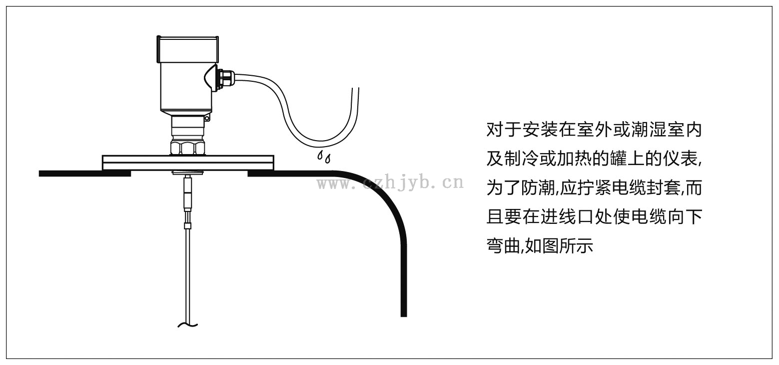 ² 如果罐內(nèi)障礙物比較多或過于靠近探頭傳感器時,可安裝導(dǎo)波管進(jìn)行測量