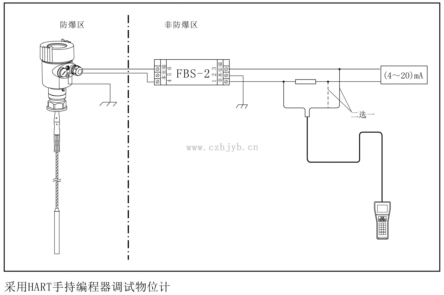 本產(chǎn)品使用時須用安全柵供電。FBS-2安全柵系本產(chǎn)品的關(guān)聯(lián)設(shè)備,防爆形式為本質(zhì)安全型。防爆標(biāo)志:[Exia] IIC ,供電電壓(21.6~26.4)V DC,短路電流為135mA,工作電流(4~20)mA。