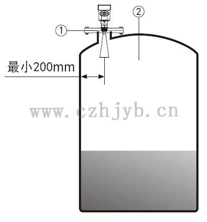 注:距離罐壁最小距離應(yīng)為200mm。